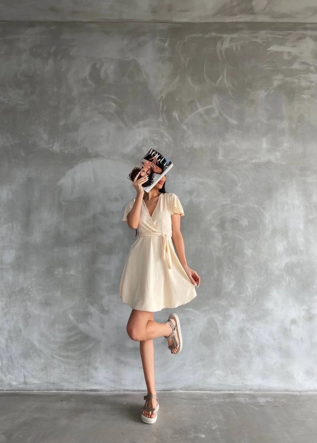 Kuşaklı mdl esnek kumaşlı elbise bej pt