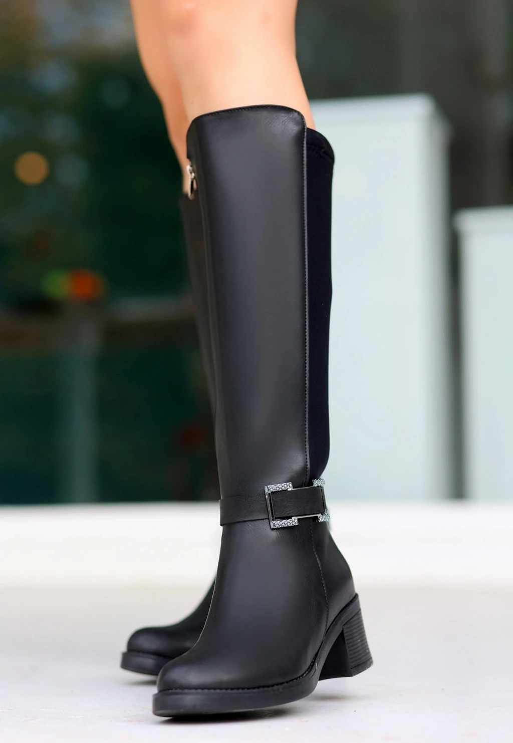 Canty Siyah Süet Körüklü Topuklu Çizme