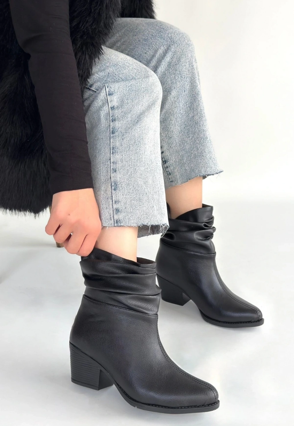 Lukana Siyah Cilt Topuklu Körüklü Bot