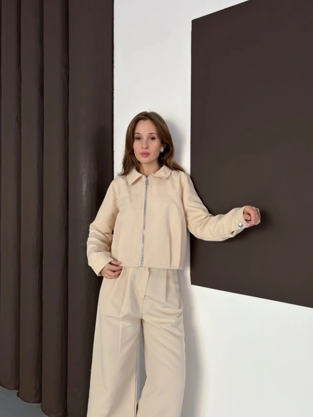 Gömlek yaka kaplama düğmeli takım kahve st265866
