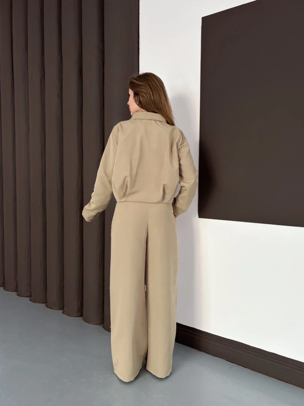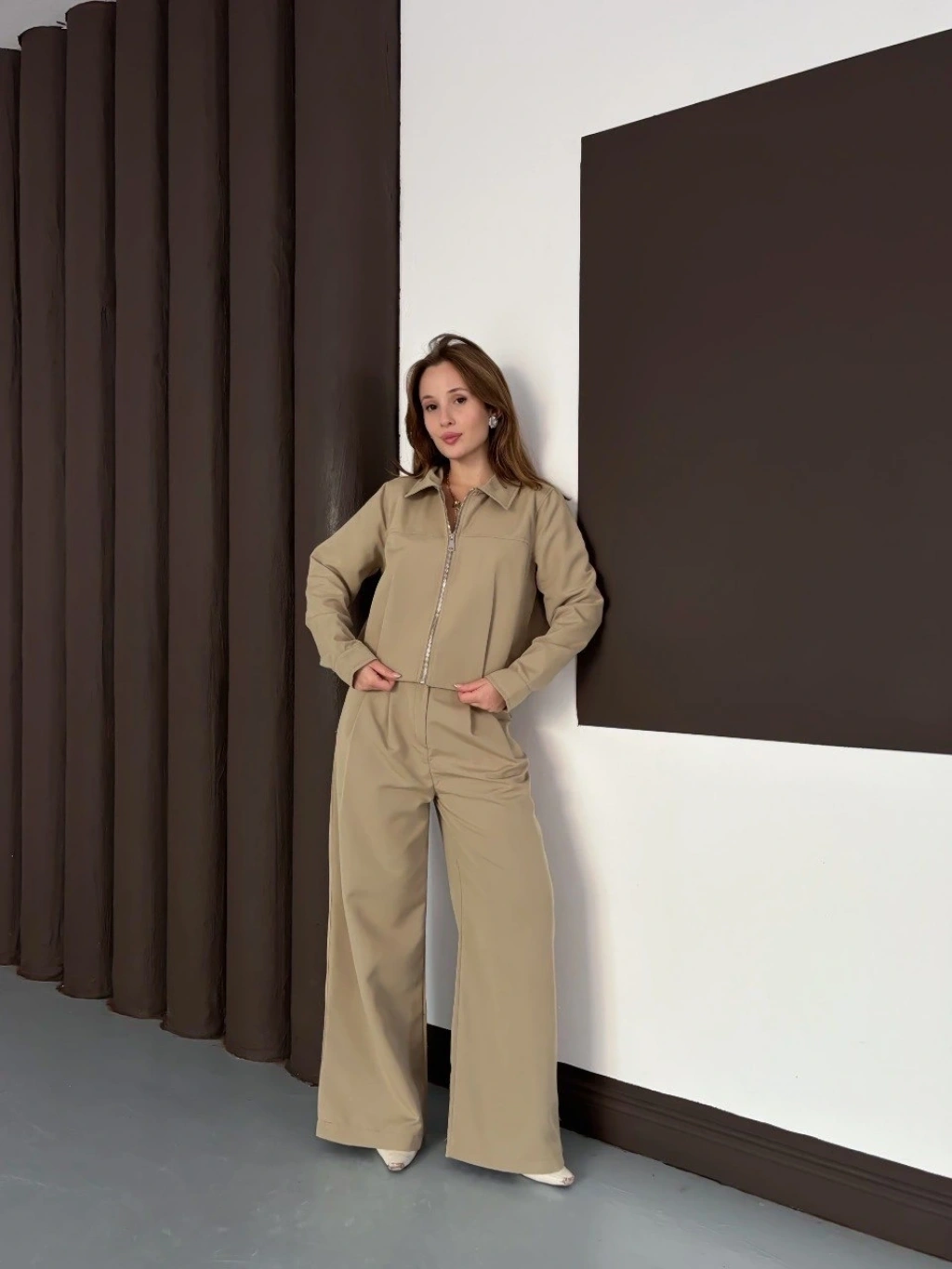 Gömlek yaka kaplama düğmeli takım kahve st265866