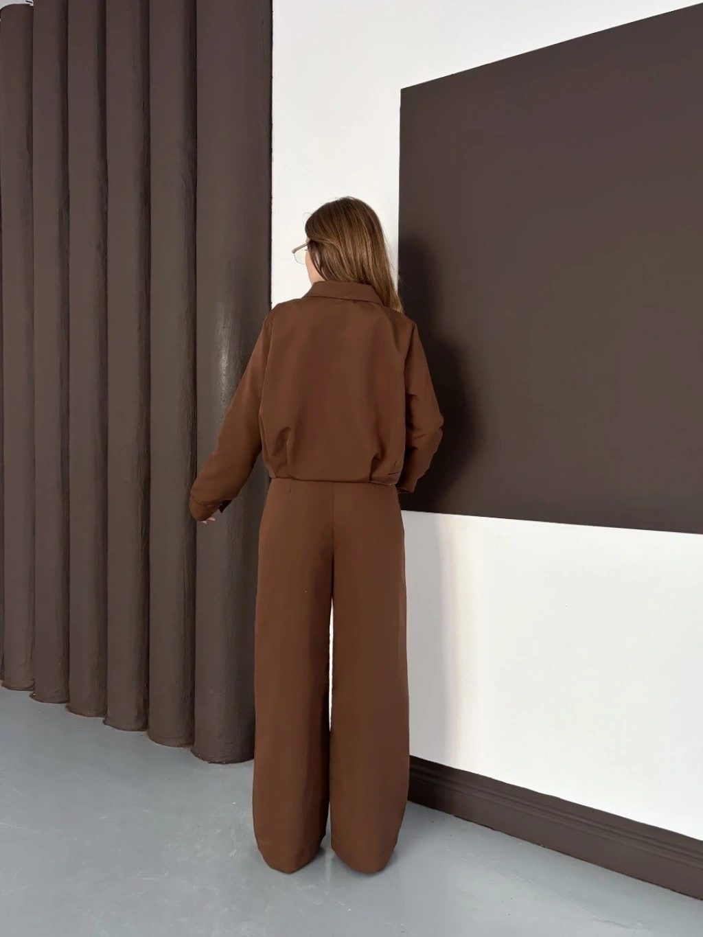 Gömlek yaka kaplama düğmeli takım kahve st265866
